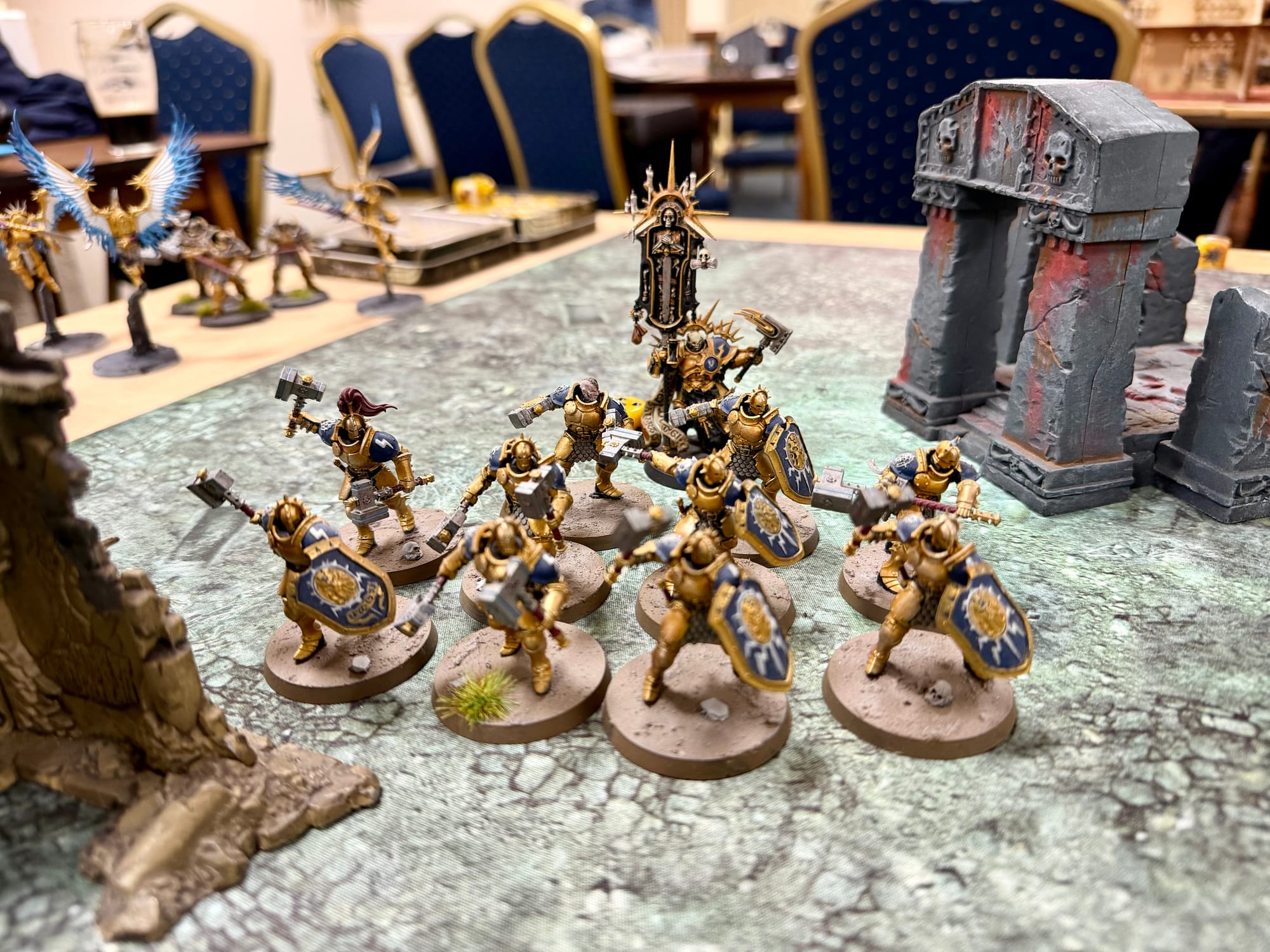 Stormcast Eternals. Rank upon rank of Liberators, shields locked, lightning crawling over sigmarite. Above them, Prosecutors wheeled like hunting birds. And at their heart strode power made flesh: a Lord-Relictor chanting to his corpse-god, a Lord-Vigilant astride a gryph-charger, a grim Lord-Terminos carrying execution in his hands.